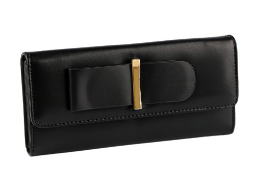 Dámská peněženka zaujme svým elegantním vzhledem. Přední stranu má ozdobenou designovou mašlí s kovovou sponou. Peněženka má velice kvalitní provedení z eko kůže. Zavírá se na klopu a patent. Peněženka má celkem 10 přihrádek na karty, z nichž jedna je průhledná a 1 dlouhá přihrádka na účtenky apod. Uprostřed peněženky se nachází 2 kapsy na bankovky, oddělené přepážkou, ve které je umístěný mincovník s uzavíráním na zip.