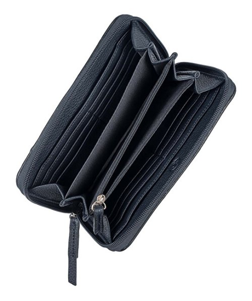Poznámka Dámská velká peněženka, v modré barvě, hlavní zipová kapsa, 1 přihrádka na mince na zip, 12 slotů na karty, 2 přihrádky na bankovky, 3 otevřené kapsy.