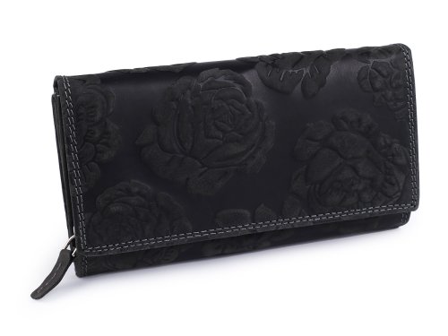 Luxusní dámská peněženka z pravé kůže má velice kvalitní provedení a chytrý design. Má elegantní povrch s velkými raženými květy. Peněženka č.1 - 9] má přední stranu na klopu s 2 patenty. Nabídne své majitelce velké množství kapes a přihrádek. Kromě velkého úložného prostoru na bankovky, má i uzavítratelnou kapsu na mince, kapsu na doklady, místo pro uložení 10 platebních nebo věrnostních karet a mnoho dalších kapes pro vaše použití. Peněženky č.10 - 18 jsou dlouhé 17 cm. Klopu na patent mají z přední i zadní strany. Nabídnou své majitelce velké množství kapes a přihrádek. Kromě velkého úložného prostoru na bankovky, mají i uzavítratelnou kapsu na mince, kapsu na doklady, místo pro uložení 21 platebních nebo věrnostních karet a mnoho dalších kapes. Upozorňujeme zákazníky, že odstíny peněženek se mohou mírně lišit. [Některé peněženky mohou mít zip ze zadní strany nebo mohou mít zapínání na přezku.]