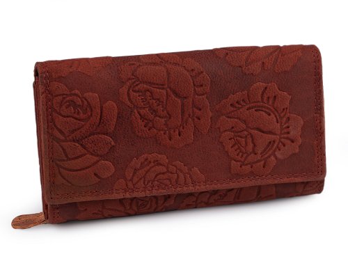 Luxusní dámská peněženka z pravé kůže má velice kvalitní provedení a chytrý design. Má elegantní povrch s velkými raženými květy. Peněženka č.1 - 9] má přední stranu na klopu s 2 patenty. Nabídne své majitelce velké množství kapes a přihrádek. Kromě velkého úložného prostoru na bankovky, má i uzavítratelnou kapsu na mince, kapsu na doklady, místo pro uložení 10 platebních nebo věrnostních karet a mnoho dalších kapes pro vaše použití. Peněženky č.10 - 18 jsou dlouhé 17 cm. Klopu na patent mají z přední i zadní strany. Nabídnou své majitelce velké množství kapes a přihrádek. Kromě velkého úložného prostoru na bankovky, mají i uzavítratelnou kapsu na mince, kapsu na doklady, místo pro uložení 21 platebních nebo věrnostních karet a mnoho dalších kapes. Upozorňujeme zákazníky, že odstíny peněženek se mohou mírně lišit. [Některé peněženky mohou mít zip ze zadní strany nebo mohou mít zapínání na přezku.]