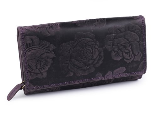 Luxusní dámská peněženka z pravé kůže má velice kvalitní provedení a chytrý design. Má elegantní povrch s velkými raženými květy. Peněženka č.1 - 9] má přední stranu na klopu s 2 patenty. Nabídne své majitelce velké množství kapes a přihrádek. Kromě velkého úložného prostoru na bankovky, má i uzavítratelnou kapsu na mince, kapsu na doklady, místo pro uložení 10 platebních nebo věrnostních karet a mnoho dalších kapes pro vaše použití. Peněženky č.10 - 18 jsou dlouhé 17 cm. Klopu na patent mají z přední i zadní strany. Nabídnou své majitelce velké množství kapes a přihrádek. Kromě velkého úložného prostoru na bankovky, mají i uzavítratelnou kapsu na mince, kapsu na doklady, místo pro uložení 21 platebních nebo věrnostních karet a mnoho dalších kapes. Upozorňujeme zákazníky, že odstíny peněženek se mohou mírně lišit. [Některé peněženky mohou mít zip ze zadní strany nebo mohou mít zapínání na přezku.]