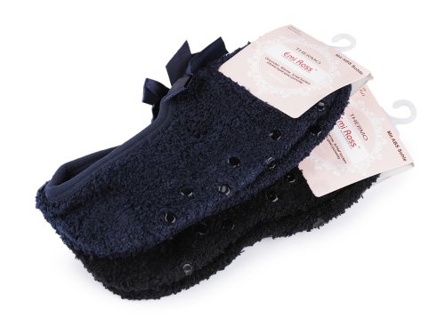 Romantické froté ponožky si oblíbíte na spaní a domácí lenošení, protože jsou neuvěřitelně měkké a hebké. Jsou ozdobené saténovou mašlí, mají plochý šev ve špičce - netlačí. Díky pružnému a přizpůsobivému okraji dobře sedí na noze. Na spodní straně mají protiskluzové puntíky. Upozorňujeme zákazníky, že barva protiskluzových puntíků se může lišit. Ponožky jsou zabalené po 2 párech.