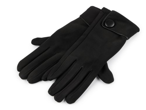 Dámské rukavice výborně pruží, díky tomu se perfektně natahují. Uvnitř mají jemný plyš, jenž je velice příjemný na dotek. Hodí se do mírné zimy nebo do chladnějšího podzimního počasí. Na ukazováčku pravé i levé ruky mají vyšitý květ, díky kterému můžete ovládat dotykové přístroje - mobil, tablet, bankomat apod. Rukavice č.1 jsou na vrchní straně ozdobené manžetou s koženkovým knoflíkem. Rukavice č.2 jsou ozdobené kožešinkovým lemem z imitace kožešiny a třemi knoflíky. Upozorňujeme zákazníky, že rukavice mohou zabarvit světlé tkaniny. Doporučujeme je nosit společně s tmavým oděvem. Šířka je měřená na volně položených rukavicích uprostřed (bez palce).