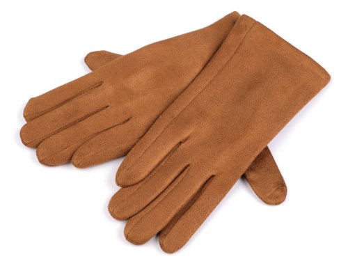 Elegantní dámské rukavice jsou jemně pružné. Povrch rukavic je z mikrosemiše, připomíná broušenou kůži. Uvnitř mají jemný plyš, jenž je velice příjemný na dotek. Hodí se do mírné zimy nebo do chladnějšího podzimního počasí. Šířka je měřená na volně položených rukavicích uprostřed (bez palce).