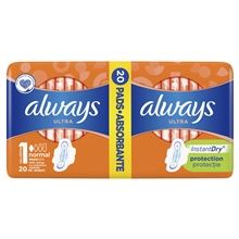 Dámské vložky Always - ultra normal, duo, 20 ks Nespokojte se s ničím jiným než s 3násobnou ochranou: Hygienické vložky Always Ultra Normal (velikost 1) s křidélky využívají nejnovější technologie a …