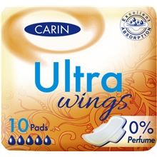 Vložky Carin Ultra Wings – 10 ks Ultra tenké vložky s křidélky poskytují spolehlivou ochranu a maximální pohodlí během menstruace Každá vložka je jednotlivě balená, což zajišťuje hygienu a praktické …
