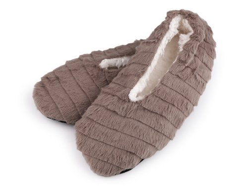 Dámské balerínky jsou skvělé jako domácí obuv. Jsou heboučké, [z vrchní strany mají umělou kožešinu], uvnitř je teplá chlupatá podšívka, která věrně imituje vlnu. Protiskluzové gumové tečky na chodidle zabrání uklouznutí. Upozorňujeme zákazníky, že složení na štítcích se může lišit, materiál je akryl, polyamid a polyester. [Vnitřní délka u velikosti 35-38 je 23 cm, u velikosti 39-42 je 26 cm.]