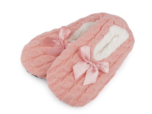 Dámské balerínky jsou skvělé jako domácí obuv. [Z vrchní strany je pletenina s copánkovým vzorem, uvnitř je teplá chlupatá podšívka, která věrně imituje vlnu.] Protiskluzové gumové tečky na chodidle zabrání uklouznutí. Upozorňujeme zákazníky, že složení na štítcích se může lišit, materiál je akryl, polyamid a polyester.