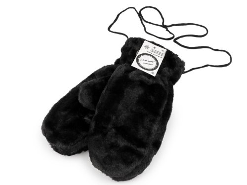 Dámské rukavice palčáky z umělé kožešiny jsou uvnitř zateplené příjemným plyšovým kožíškem. Jsou ozdobené štítkem z umělé kůže. Hodí se do zimy, ruce perfektně zahřejí. Jdou navzájem spojit přiloženou šňůrou dlouhou 1,1 metru, která se přiváže k poutkům u okraje rukavic. Slouží na provlečení rukávy, aby se rukavice neztratily. Šířka je měřená na volně položených rukavicích uprostřed (bez palce). Rukavice mohou mít špatné štítky, skutečné složení je polyester.