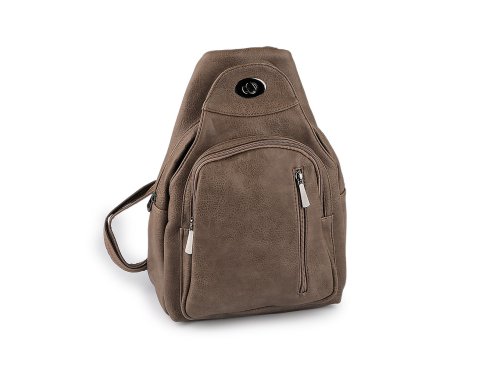 Malý městský batoh působí vkusně a stylově doplní váš outfit. Je ideální na procházky, pomocí chytrých zadních popruhů se zipem jej můžete proměnit na crossbody kabelku. [Hlavní kapsa se uzavírá pomocí klopy s mechanickým zapínám, pod kterou je ještě zapínání na zip. Uvnitř najdete 2 malé kapsičky na drobnosti. Pod klopou je další menší kapsa. Na přední straně batohu jsou 2 kapsy na zip. Poslední zipová kapsa je na zadní straně batohu.] Ucho je pevné, krátké do ruky či na pověšení. Popruhy jsou dostatečně dlouhé s možností regulace pro pohodlné užívání během celého dne. Dají se pomocí zipů sepnout do jednoho popruhu, díky kterému můžete batoh nosit křížem jako crossbody kabelku.
