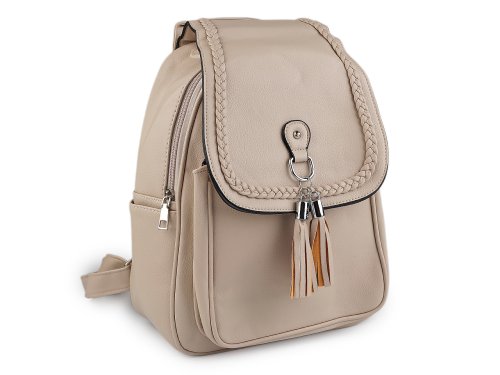 Elegantní batoh je ideální na nošení do města i na výlety. Minimalistický styl obohacený o jemné zdobení dodává batohu sofistikovaný vzhled. Hlavní kapsa je na zip, je velice prostorná. Uvnitř najdete dvě menší postranní přihrádky a kapsu na zip. Další kapsa na zip je na zadní straně batohu a v přední části je kapsa s magnetickým zapínáním. Na obou bočních stranách batohu jsou přihrádky (např. na nákupní tašku, na menší deštník apod.). Ucho je pevné, krátké do ruky či na pověšení. Popruhy jsou dostatečně dlouhé s možností regulace pro pohodlné užívání během celého dne.