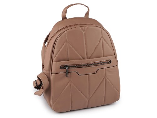 Stylový městský batoh ozdobený štepováním se dá lehce přeměnit na crossbody kabelku. Skvěle doplní váš outfit. Díky syntetického materiálu, který vypadá jako kůže, má batoh punc kvality i vkusné originality. Je ideální na nošení do města, kanceláře i na výlety. Hlavní kapsa je na zip, je velice prostorná. Uvnitř má kapsičku na zip na drobnosti či mobil a 2 kapsy na uložení plochých předmětů. Na přední straně batohu jsou další 2 kapsy na zip. Ucho je pevné, krátké do ruky či na pověšení. Popruhy jsou dostatečně dlouhé s možností regulace pro pohodlné užívání během celého dne. Nahoře jsou popruhy v kovových průvlecích, které slouží na protáhnutí popruhů na nošení křížem jako crossbody kabelka. Dno batohu je opatřené kovovými hřeby, které jej chrání před poškozením.