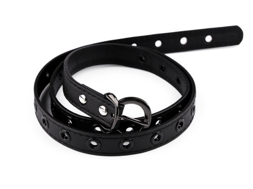Dámský pásek s oky po celé délce se řadí k nadčasovým modelům. Mohou jej nosit i dívky, protože obvod pásku si lehce přizpůsobí svému pasu. Díky jednoduchému designu se dá dobře kombinovat se širokou škálou oděvů. Má klasickou kovovou sponu na zapnutí a štepování po obvodu. Maximální obvod zapnutí je 97 cm.