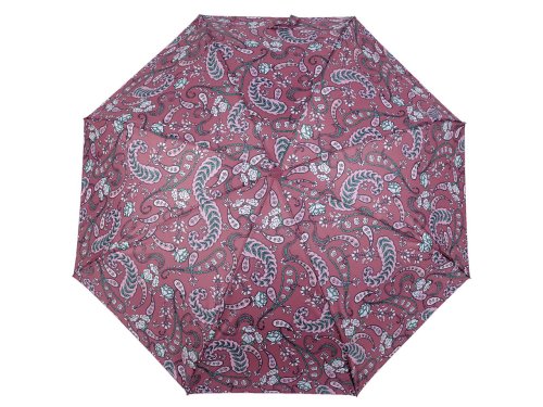 Skládací deštník [s potahem s paisley motivem] je díky hliníkové konstrukci a malé velikosti lehký a skladný, pohodlně se vám vejde do kabelky. Konstrukce je tvořena osmi poli. Rukojeť deštníku je plastová a opatřená poutkem. Zapínání je klasické na suchý zip. Součástí deštníku je ochranný obal, který se také zapíná na suchý zip. Hloubka deštníku je 20 cm. Celková délka je 54 cm. Délka složeného deštníku je [19 cm].