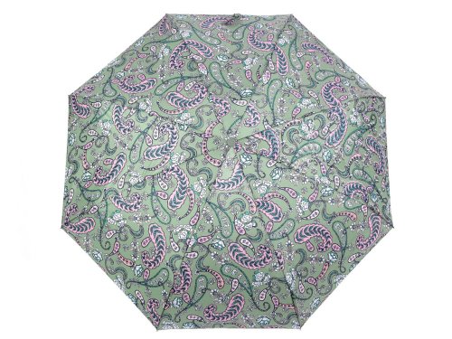Skládací deštník [s potahem s paisley motivem] je díky hliníkové konstrukci a malé velikosti lehký a skladný, pohodlně se vám vejde do kabelky. Konstrukce je tvořena osmi poli. Rukojeť deštníku je plastová a opatřená poutkem. Zapínání je klasické na suchý zip. Součástí deštníku je ochranný obal, který se také zapíná na suchý zip. Hloubka deštníku je 20 cm. Celková délka je 54 cm. Délka složeného deštníku je [19 cm].