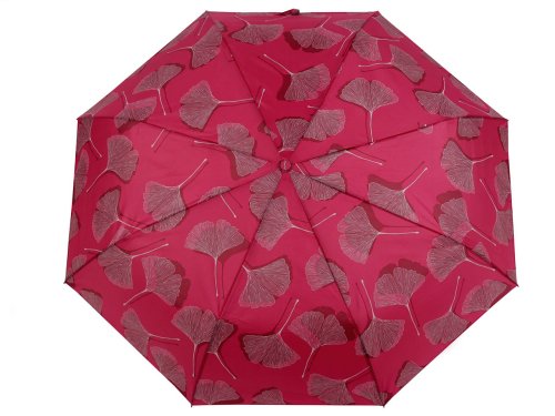Dámský skládací deštník zaujme svým potahem s listy ginkgo. Rozevírá se stisknutím tlačítka na rukojeti. Rukojeť je plastová, opatřená poutkem. Deštník je velice pevný, odolá náporům větru. UV filtr vás ochrání před slunečním zářením. Konstrukce deštníku se skládá z osmi polí. Součástí deštníku je ochranný obal. Hloubka deštníku je 20 cm. Celková délka je 58 cm. Délka složeného deštníku je 32 cm.