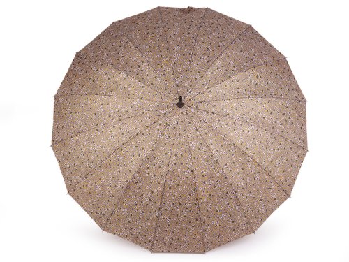 Velký dámský vystřelovací deštník se vzorovaným potahem drobných květů vás spolehlivě ochrání před nepřízní počasí. Skládá se z 16 výsečí, díky kterým se deštník řadí mezi luxusní kousky. Konstrukce je vyrobená z pružných lamel zajišťujících vysokou pevnost a stabilitu. UV filtr vás ochrání před slunečním zářením. Deštník má klasickou tyč zakončenou pevnou rukojetí. Hloubka deštníku je 26 cm.