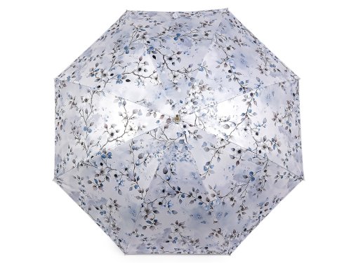 Velký dámský deštník s květinovým motivem je stylovým a praktickým doplňkem pro každou ženu. Díky svému atraktivnímu designu s květy, dodá šarm i těm nejzamračenějším dnům. Je vystřelovací, konstrukci má z kovového drátu a pružných lamel, které tvoří osm polí. Díky nim je velice pevný, neohne se ani za největšího nečasu. UV filtr vás ochrání před slunečním zářením. Klasická tyč je zakončená pevnou rukojetí z eko kůže. Dolní strana potahu je černá. Hloubka deštníku je 24 cm.