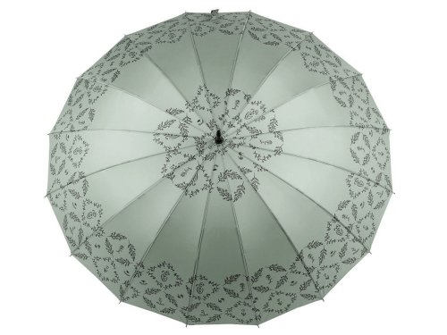 Dámský vystřelovací deštník s jemným vzorem větviček a květů vás spolehlivě ochrání před nepřízní počasí. Skládá se z 16 výsečí, díky kterým se deštník řadí mezi luxusní kousky. Konstrukce je vyrobená z kovových drátů a pružných lamel zajišťujících vysokou pevnost a stabilitu, deštník se neohne ani za největšího nečasu. Má klasickou tyč zakončenou pevnou rukojetí. Hloubka deštníku je 27 cm.