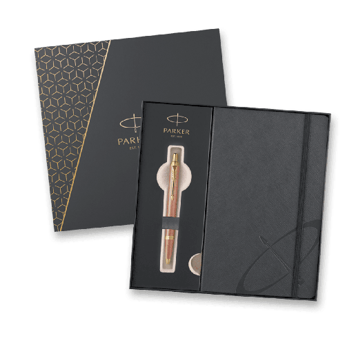 Dárková kazeta obsahuje:, * kuličkové pero Parker IM Writing Rituals Orange GT, * šedý zápisník Parker, * voucher Akademie psaní