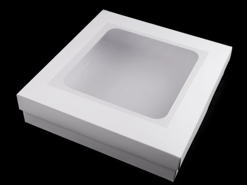 Čtvercová papírová krabice má výřez ve víku z průhledné fólie. Využijete ji na balení dárků, šátků, uložení baněk apod. Můžete si ji i dozdobit podle svého vkusu. Krabici dodáváme v rozloženém stavu (horní víko - 47 x 47 cm, spodní část krabice - 60 x 60 cm). Složíte si ji jednoduše podle vyznačených ohýbacích krajů. Rozměr průhledu je 20 x 20 cm. [Připravili jsme pro vás foto návod na skládání krabičky.]