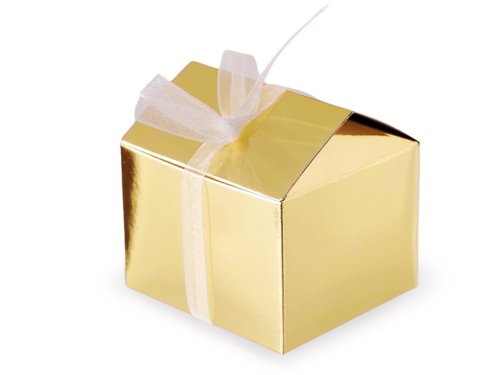 Dárková krabička domeček s lesklým metalickým povrchem potěší každého obdarovaného. Po složení ji můžete ovázat monofilovou stuhou, která je součástí balení. Krabičku můžete použít na malé dárky, jako je kosmetika, bižuterie, svíčka, balené pralinky apod). Oceníte ji i na přípravu adventního kalendáře. Krabičku dodáváme v rozloženém stavu (20,5 x 32,7 cm). Složíte ji jednoduše podle vyznačených ohýbacích krajů. Krabička nemá atest na potraviny, pochoutky a jiné laskominy doporučujeme vložit zabalené v sáčku.