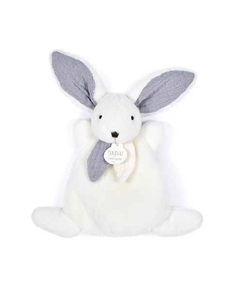 Tato malá plyšová hračka králíčka byla navržena tak, aby uklidňovala miminko. Je extrémně měkká a příjemná na dotek. Rozkošný králíček v v bílé barvě s šedými oušky a mašlí, je posazený do nádherné dárkové krabičky s grafikou evokující modernost i luxus. Tato plyšová hračka je také ideální jako dárek. Údržba: Perte v lázni na 30°. Přirozené nebo nízkoteplotní sušení. Rozměr králíčka: 17 cm Materiál: látka, plyš Věk: 0+ Dárková krabička