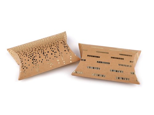 Sada 2 krabiček s poutavým metalickým potiskem je určená na zabalení drobných dárků. Má tvar polštářku, tzv. pukačka, je velice poutavá. Krabičku dodáváme v rozloženém stavu (10 x 17 cm). Složíte ji jednoduše podle vyznačených ohýbacích krajů. Krabička nemá atest na potraviny, pochoutky a jiné laskominy doporučujeme vložit zabalené v sáčku. Jedno balení obsahuje 2 krabičky, každá má jiný motiv potisku.