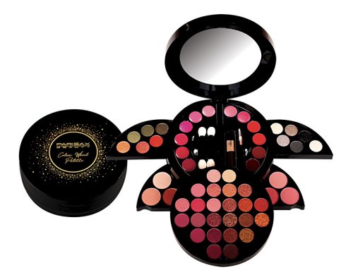 36 očních stínů Rtěnka 12 x Tvářenka 3 x Rozjasňovač 2 x Pudr 1 x Aplikátror na oční stíny 2 x Štětec na rty 1 x Štětec 1 x Zrcátko 1 x