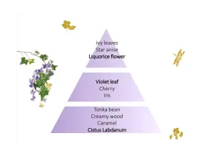 Ikonický smyslný parfém Lolita Lempicka váš interiér zahalí sladkou vůní. Vrchní tóny parfému jsou tvořeny z listů břečťanu, badyánu a jemné vůně lékořice. Ve středních tónech zaznívají noty fialek a irisu, nízké tóny pak celou vůni zahalují do vůně tonka bobů, jemného dřeva a cistu ladanového. Nechte se okouzlit tajemnou vůní labdána, květu lékořice, anýzu, jemného dřeva a karamelu, kterou doplňuje ořechově-vanilkové aroma tonka bobů.