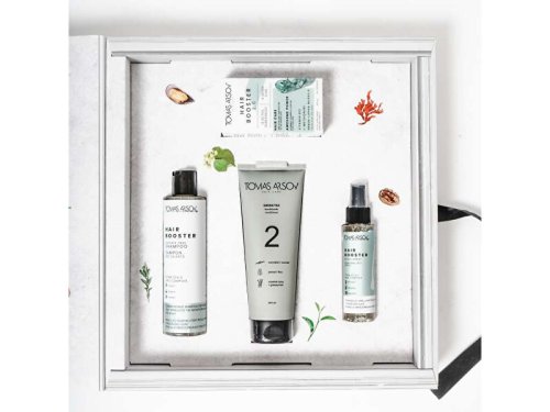 Posilující šampon proti vypadávání vlasů Hair Booster (Sulfate Free Shampoo) 250 ml Regenerační kondicionér Green Tea (Rinse Off Conditioner) 250 ml Podporujicí sprej (Hair Booster) 110 ml Doplněk stravy pro podporu růstu vlasů Hairbooster 2.0 90 ks