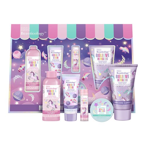 Dopřejte sobě nebo svým blízkým pohádkovou péči o celé tělo. Sladce vonící produkty jsou šetrné k pokožce a zanechávají ji hebkou a vláčnou na dotek. Vtáhnou děti i mladistvé do prostředí cukrárny. Zábava, jednorožci, vůně cukrovinek a pocit štěstí zahalí pokožku těla a dodají mytí to správné kouzlo, ať už je to koupel nebo sprcha. Provoňte také pokožku rukou a hydratujte rty vyživujícím balzámem. Kolekce Beauticology je hravá, zábavná, kouzelná a barevná. Design s holografickými detaily, veselými barvami a galaktickými motivy tvoří společně s rozmanitými vůněmi cukrovinek perfektní kolekci pro malé či větší milovníky jednorožců! Vlastnosti:• s dlouhotrvající vůní cukrovinek• pečující produkty pro děti• balzám pro hebké a vláčné rty• v dárkovém balení s galaktickými motivy Sprchový gel Jednorožčí cukrovinkyVoňavý sprchový gel vytváří bohatou pěnu, šetrně čistí a nevysušuje pokožku. Zanechá ji hebkou, vláčnou a sladce vonící po ovocných bonbonech.Použití: Naneste na vlhkou pokožku, napěňte a opláchněte. Sprchový krém Jahodové bonbonySprchový krém s hladkou texturou a vůní jahodových bonbonů vytváří krásnou, bohatou pěnu, která šetrně čistí pokožku s pocitem hebkosti.Použití: Naneste na vlhkou pokožku, napěňte a opláchněte. Koupelové krystalky Cukrová vataKrystalky do koupele s neodolatelnou vůní cukrové vaty probudí tělo i mysl a dopřejí příjemný odpočinek během koupele. Jsou šetrné k pokožce, nevysušují a zanechávají pocit hebkosti po celém těle.Použití: Nasypete do teplé vodní lázně a nechte rozpustit. Balzám na rty Jahodové bonbonyVýživný balzám dodá rtům potřebnou péči a hydrataci. Navíc je zanechá neodolatelně lesklé a sladce vonící po jahodových bonbónech.Použití: Naneste na suché a čisté rty. V průběhu dne opakujte dle potřeby. Krém na ruce Jednorožčí cukrovinkyVýživný krém dodá pokožce rukou potřebnou hydrataci a úlevu od pocitu suchosti. Zanechá ji hebkou, vláčnou a sladce vonící po ovocných bonbonech.Použití: Naneste na suchou a čistou pokožku, vmasírujte, dokud se krém zcela nevstřebá. Doplňující informace:• Vegan & Cruelty Free