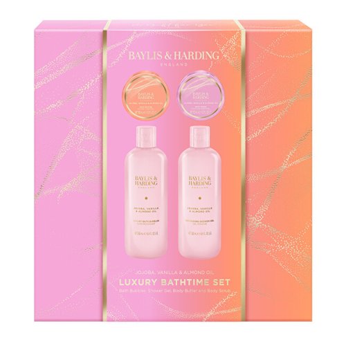 Tato nádherná dárková sada ukrývá 4 pečující produkty pro pokožku celého těla. Připravte se na jedinečný zážitek a rozmazlujte svou pokožku pomocí této exkluzivní kolekce produktů s vůní jojoby, vanilky a mandlového oleje. Obsahuje sametově jemný sprchový gel, pěnu do koupele, tělový peeling a tělové máslo pro dokonalý pocit čistoty a nádherně jemné a hebké pokožky.