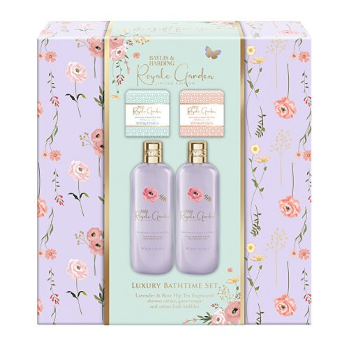 Tato nádherná dárková sada ukrývá 4 pečující produkty pro pokožku celého těla. Připravte se na jedinečný zážitek a rozmazlujte svou pokožku pomocí této exkluzivní kolekce produktů s jemnou vůní levandule a šípkového čaje. Obsahuje sametově jemný sprchový krém, pěnu do koupele a tuhé mýdlo pro dokonalý pocit čistoty. Royale Garden představuje romantickou kolekci inspirovanou tradiční anglickou zahradou. Spojuje květinové motivy s pastelovými tóny fialové a mátové, doplněné zlatými detaily. Květinový design a jemná vůně levandule a šípku vytvářejí něžnou kolekci pečujících produktů pro každou ženu. Vlastnosti:• čistí a pečují o pokožku celého těla• zklidňující, jemná vůně levandule a šípku• pro každodenní mycí rituál• v luxusním balení s květinovými motivy Sprchový krémTento nádherně hladký a bohatý krém je šetrný k pokožce, účinně čistí a vytváří intenzivní pěnu, která zanechá pokožku těla hydratovanou a jemně provoněnou.Použití: Naneste na vlhkou pokožku, vytvořte krémovou pěnu a důkladně opláchněte. Pěna do koupeleVytváří bohatou a krémovou pěnu, která hydratuje a vyživuje pokožku celého těla. Zanechá ji hebkou, hladkou a příjemně provoněnou jemnými tóny levandule a šípku.Použití: Pod proudem vody vlijte do teplé vodní lázně. Tuhé mýdlo Tuhé mýdlo odstraňuje nečistoty z pokožky rukou bez nepříjemného vysušování. Vytváří bohatou pěnu a zanechává dlouhotrvající vůni.Použití: Promněte ve vlhkých dlaních, napěňte a opláchněte. Doplňující informace:• Vegan & Cruelty Free