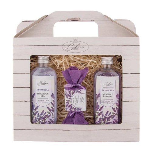 Dárkové balení kosmetiky pro ženu La Provence – dárkový sprchový gel 100 ml, vlasový šampon 100 ml a ručně vyráběné mýdlo 30 g s vůní levandule v dárkové kosmetické sadě. Milý dárek pro ženu.
