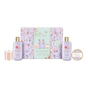 Rozmazlujte pokožku celého těla luxusními produkty a nechte se hýčkat vůní levandule a šípkového čaje. Užijte si chvíle relaxace a potěšení. Zapalte si svíčku, zhasněte světla v koupelně a ponořte se do bohaté pěny sprchového krému nebo dopřejte tělu příjemnou koupel. Také nezapomeňte hýčkat Vaše ruce hydratačním krémem. Royale Garden představuje romantickou kolekci inspirovanou tradiční anglickou zahradou. Spojuje květinové motivy s pastelovými tóny fialové a mátové, doplněné zlatými detaily. Květinový design a jemná vůně levandule a šípku vytvářejí něžnou kolekci pečujících produktů pro každou ženu. Vlastnosti:• čistí, hydratují a pečují o pokožku celého těla• zklidňující vůně levandule a šípku• dobře se vstřebávají do pokožky• svíčka pro intimní atmosféru• v dárkovém balení "ready to gift" s květinovým potiskem Sprchový krémNádherně hladký a bohatý sprchový krém je šetrný k pokožce, účinně čistí a vytváří intenzivní pěnu. Zanechá pokožku hydratovanou a jemně provoněnou.Použití: Naneste na vlhkou pokožku, napěňte a důkladně opláchněte Pěna do koupeleVytváří krémově hladkou pěnu plnou bublinek, která hydratuje a vyživuje pokožku celého těla. Zanechá ji hebkou a příjemně provoněnou květinovými tóny.Použití: Pod proudem vody vlijte do teplé vodní lázně. Krém na rucePečující krém na ruce intenzivně hydratuje a zanechává pokožku rukou hebkou a vláčnou.Použití: Naneste na suché a čisté ruce. Vmasírujte do pokožky, dokud se úplně nevstřebá. Vonná svíčkaSvíčka pro skvělou atmosféru provoní koupelnu a podpoří opravdový relaxační zážitek. Doplňující informace:• Vegan & Cruelty Free