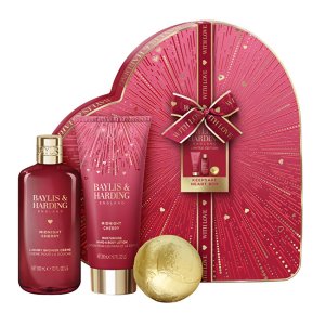 Tato elegantní dárková sada ve tvaru srdce z limitované edice Baylis & Harding Midnight Cherry je dokonalým spojením stylu a péče. Uvnitř najdete luxusní sprchový krém, hydratační mléko na ruce a tělo a šumivou kouli do koupele – vše se šťavnatou a svůdnou vůní třešní, mandlí a likéru. Ideální jako dárek z lásky nebo pod stromeček. Kolekce Midnight Cherry s vůní sladkokyselé třešně, jemných mandlí a kapky likéru v sobě spojuje sváteční atmosféru a hřejivé kouzlo zimních večerů. Výrazný design v tónech rudé a růžové se zlatými detaily dodává každému produktu slavnostní nádech – ideální pro chvíle rozmazlování nebo jako luxusní dárek pod stromeček. Vlastnosti:• čistí, hydratují a pečují o pokožku celého těla• se šťavnatou vůní třešní, mandlí a likéru• dobře se vstřebávají do pokožky• v dárkovém balení ve tvaru srdce Sprchový krém Nádherně hladký a bohatý sprchový krém je šetrný k pokožce, účinně čistí a vytváří intenzivní pěnu. Zanechá pokožku hydratovanou a jemně provoněnou.Použití: Naneste na vlhkou pokožku, napěňte a důkladně opláchněte. Šumivá koule do koupeleNení nad příjemnou uvolňující koupel s vůní třešní, mandlí a likéru, která pohladí nejen pokožku, ale i duši. Zanechá vaši pokožku čistou, vláčnou a krásně provoněnou, navíc se šumivým efektem.Použití: Dejte do teplé vodní lázně, nechejte rozpustit a relaxujte. Mléko na tělo a ruceVyživující mléko dodává pokožce potřebnou hydrataci a úlevu od pocitu suchosti, zanechává ji hebkou, vláčnou a příjemně provoněnou.Použití: Naneste na suchou a čistou pokožku a vmasírujte dokud se zcela nevstřebá. Doplňující informace:• Vegan & Cruelty Free