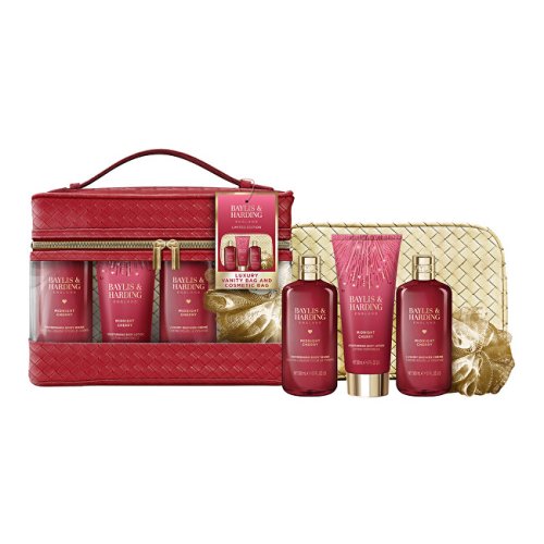 Rozmazlujte pokožku celého těla luxusními produkty během každodenního mycího rituálu s vůní třešní, mandlí a likéru! Jakoby vás zahalila vůně právě upečeného svátečního koláče. Užijte si chvíle relaxace s touto sadou pečujících produktů. Sprchový gel a krém jemně čistí pokožku těla, zatímco tělové mléko dodá pokožce potřebnou hydrataci a výživu s výsledkem hladké a nádherně provoněné pokožky. V sadě nechybí ani praktická tělová houbička. Kolekce Midnight Cherry s vůní sladkokyselé třešně, jemných mandlí a kapky likéru v sobě spojuje sváteční atmosféru a hřejivé kouzlo zimních večerů. Výrazný design v tónech rudé a růžové se zlatými detaily dodává každému produktu slavnostní nádech – ideální pro chvíle rozmazlování nebo jako luxusní dárek pod stromeček. Vlastnosti: • čistí, hydratují a vyživují pokožku • s dlouhotrvající vůní třešní, mandlí a likéru • dobře se vstřebávají do pokožky • pro dokonalou péči o celé tělo • baleno ve velké toaletní taštičce