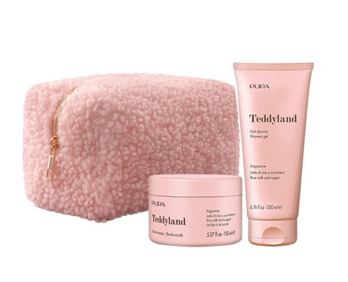 Sprchový gel Rice Milk and Sugar Teddyland (Shower Gel) 200 ml Tělový peeling Rice Milk and Sugar Teddyland (Body Scrub) 150 ml Kosmetická taška