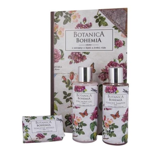 Kosmetický dárkový balíček složený z výrobků prémiové kosmetiky Botanica Bohemia – šípky a růže. Originální dárková sada obsahuje sprchový gel 200 ml. vlasový šampon 200 ml a ručně vyráběné toaletní mýdlo 100 g s extrakty z šípků a květů růže.