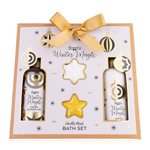 Sprchový gel s vůní vanilky a pižma Winter Magic (Shower Gel) 100 ml Tělové mléko s vůní vanilky a pižma Winter Magic (Body Cream) 100 ml Šumivá koule do koupele s vůní vanilky a pižma (Fizzer) 15 g + 25 g