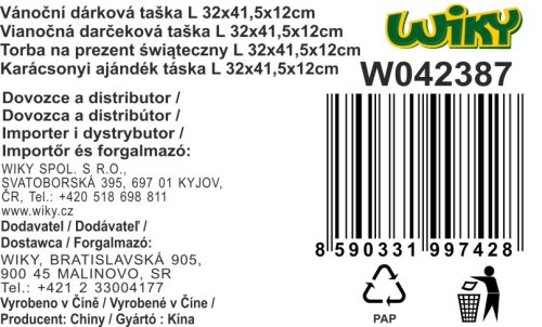 Dárková taška o velikosti L 32x41,5x12 cm VÁNOCE.