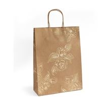 taška z kraftového papíru s ozdobnými zlatými květy alternativa igelitových tašek taška je lepená, má ploché dno, kroucené ucho rozměr 33x10x24 cm gramáž 130g/m2 balení 5 ks