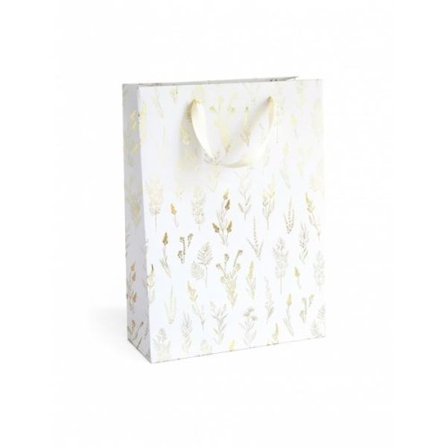 Dárková taška - L, 33 x 24cm, bílá, zlaté květiny,