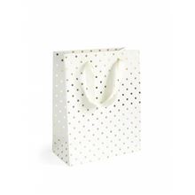 Dárková taška - M, 25 x 20 cm, bílá, zlaté puntíky