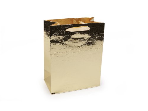 Dárková taška s efektním metalickým povrchem se strukturou krokodýlí kůže se hodí na rychlé zabalení středně velkého dárku. Taška je pevná, vyrobená z kvalitního papíru. Ucha jsou z ploché stuhy, pohodlné do ruky.