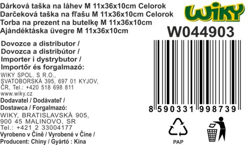 Dárková taška na láhev o velikosti M 11x36x10 cm Celorok. 2 barevné provedení.