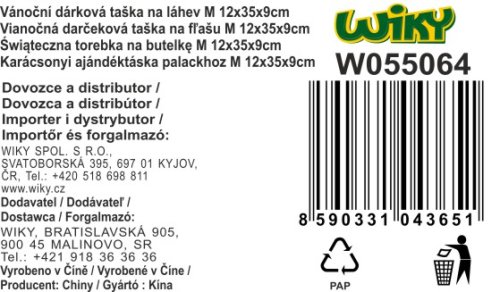 Dárková taška na láhev o velikosti M 12x35x9 cm VÁNOCE. 4 varianty.