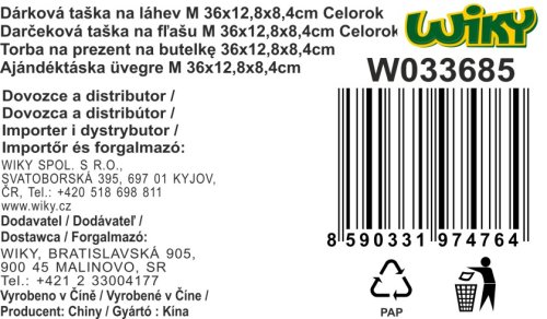 Dárková taška na láhev o velikosti M 36x12,8x8,4 cm celorok