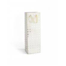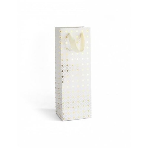 Papírová dekorativní dárková taška na víno, rychlý pomocník při balení vašich dárků Rozměry: velikost XL - 35 x 10 x 12 cm Barva: bílá Motiv: zlatý metalický geometrický vzor Počet ks v balení: 5 ks